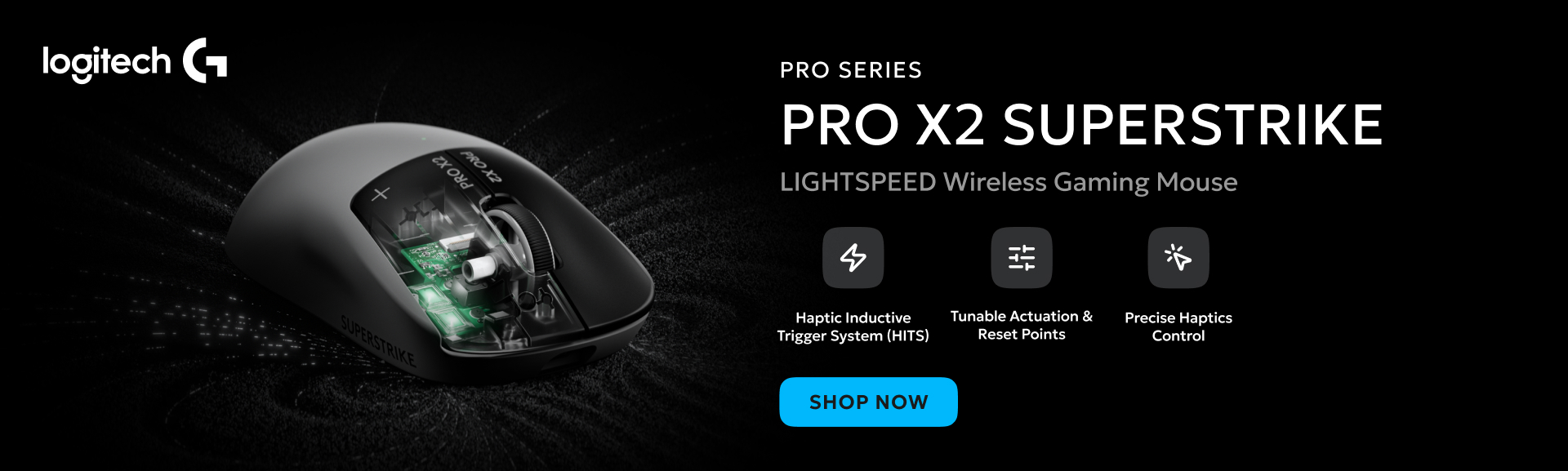 Logitech PRO X2 SUPERSTRIKE Lightspeed Wireless Gaming Mouse Lunar Eclipse - Ultra Lightweight