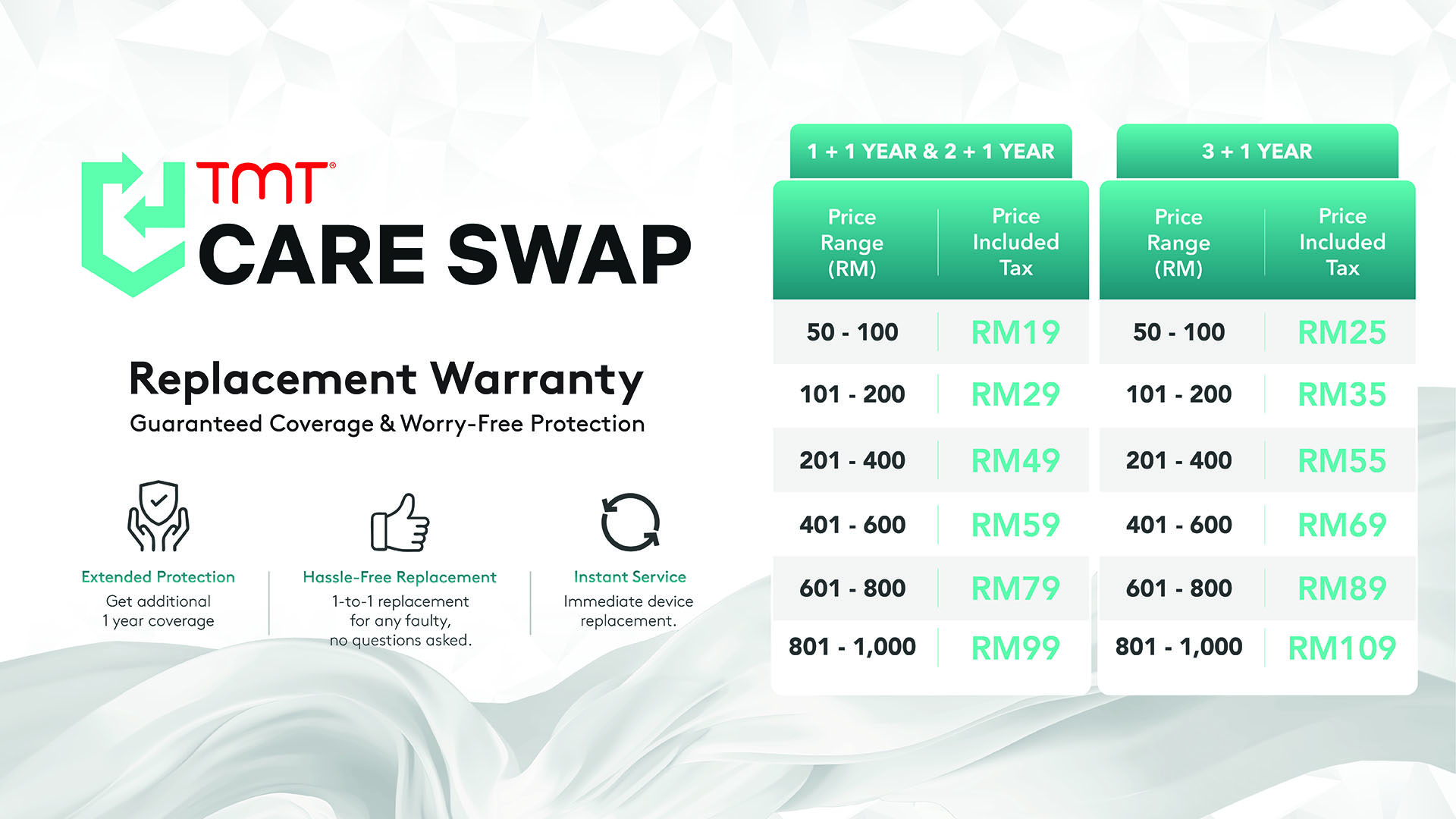 At TMT, we offer great deals and premium protection with our TMT Protection Plan.