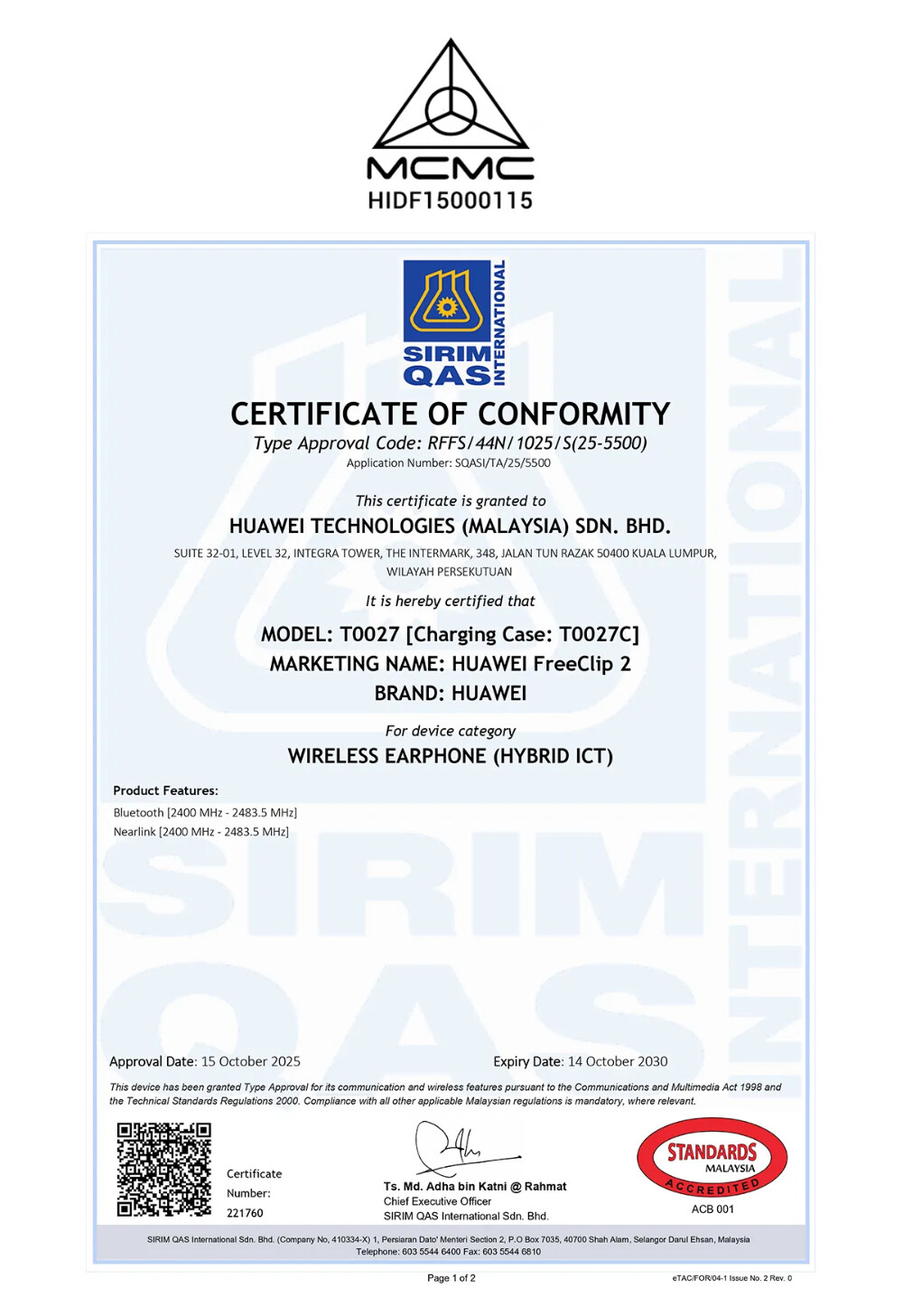 HUAWEI FreeClip 2