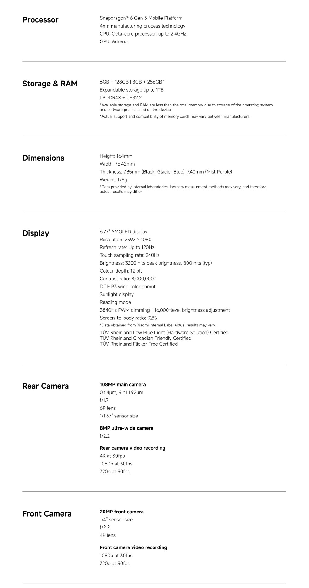Specifications