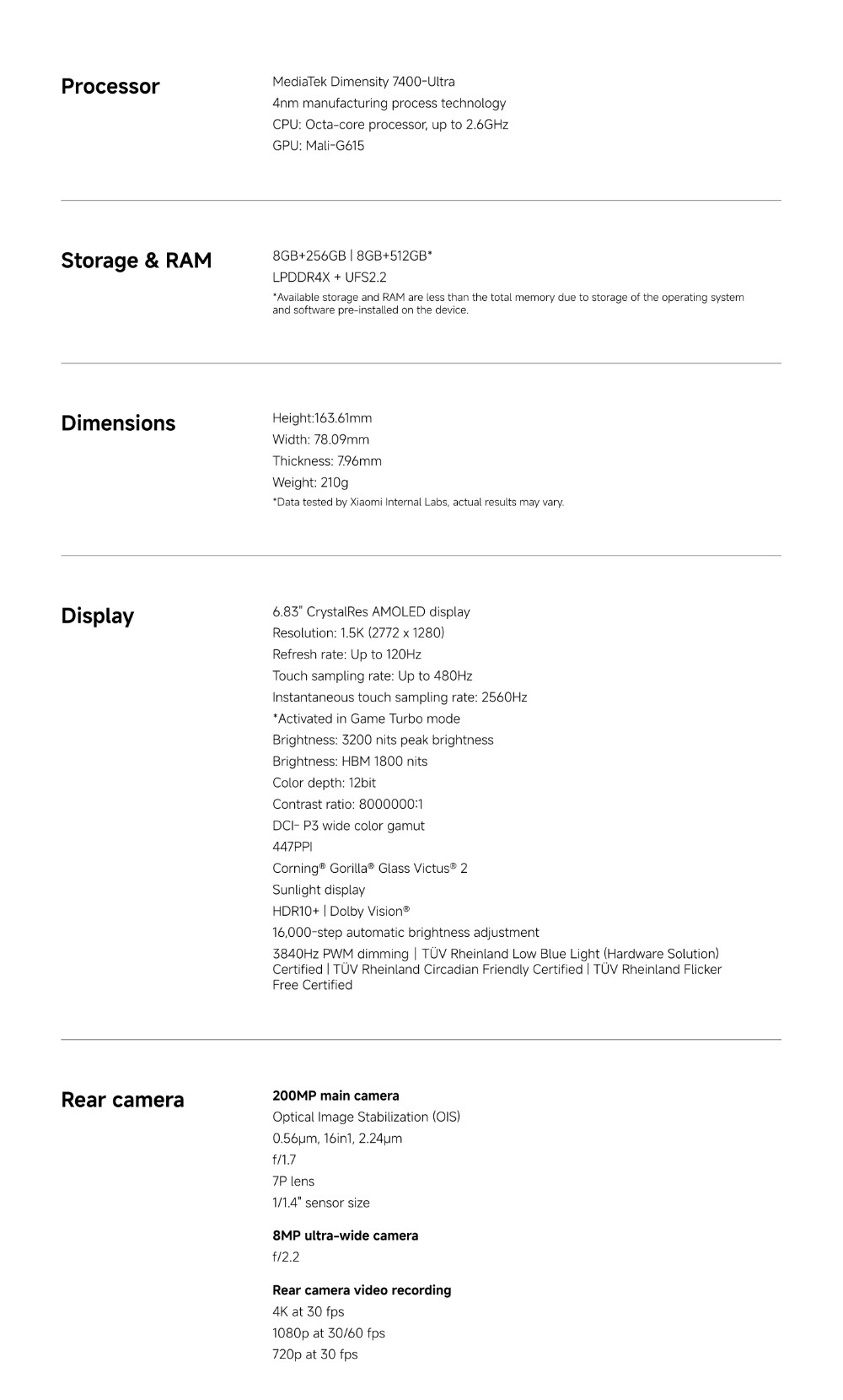 Specifications